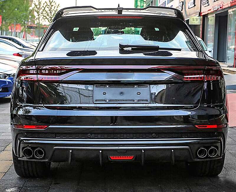 Диффузор заднего бампера карбоновый с диодным стоп сигналом и насадками глушителей для Audi Q8 SQ8 2019-2023