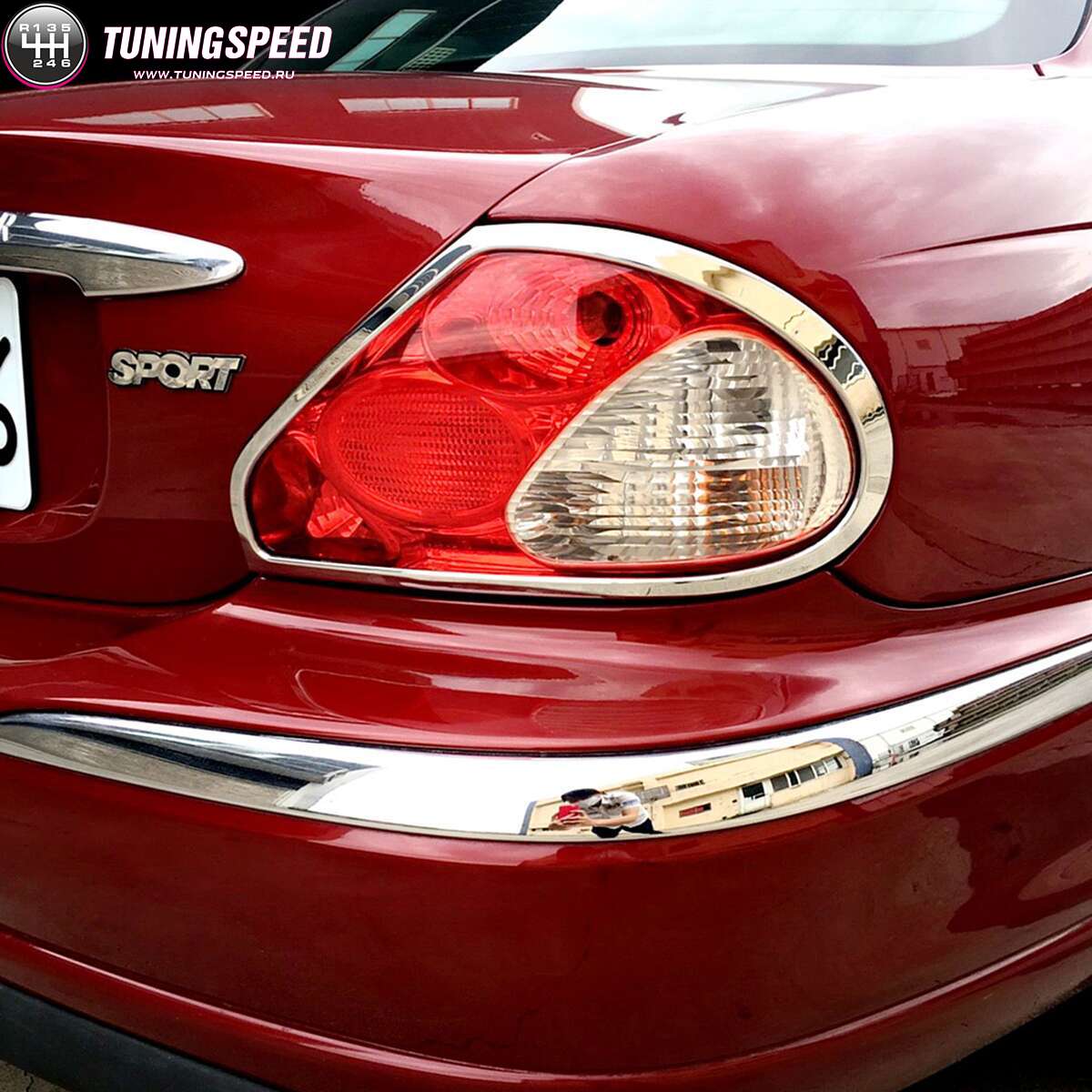 Накладки на задние фонари хромированные IDFR 1-JR801-02C для Jaguar X-Type 2001-2008