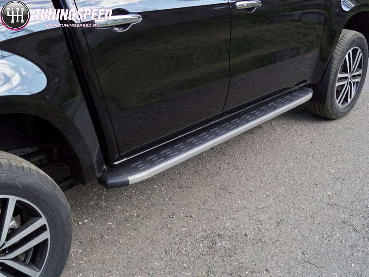Пороги алюминиевые с пластиковой накладкой (карбон серые) 1920 мм код MERXCL18-17GR для Mercedes-Benz X-Class 2017-2020