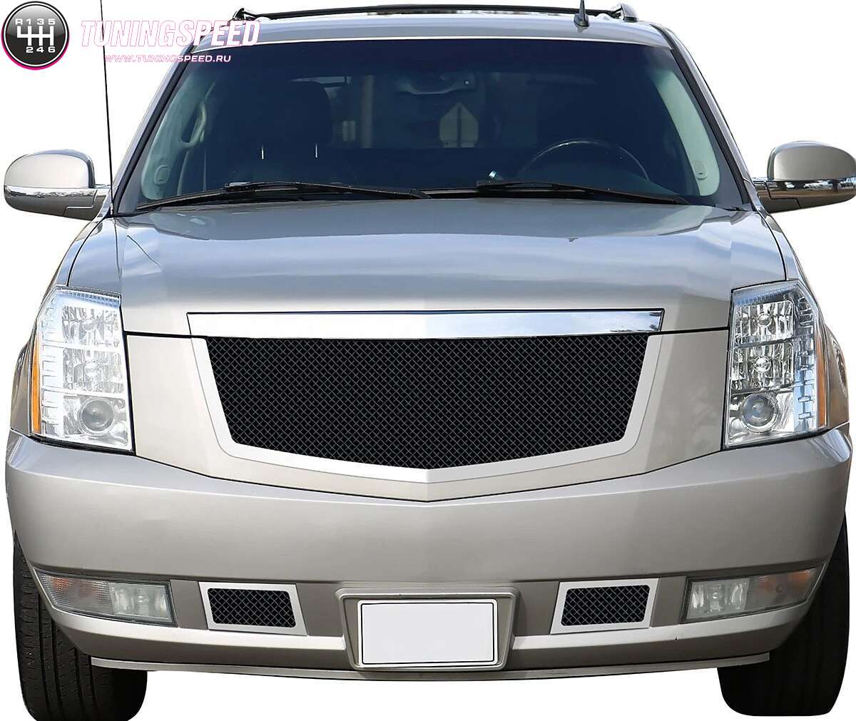 Решетка радиатора и решетки в бампер стальные с черной сеткой 2шт. для Cadillac Escalade 2007-2014