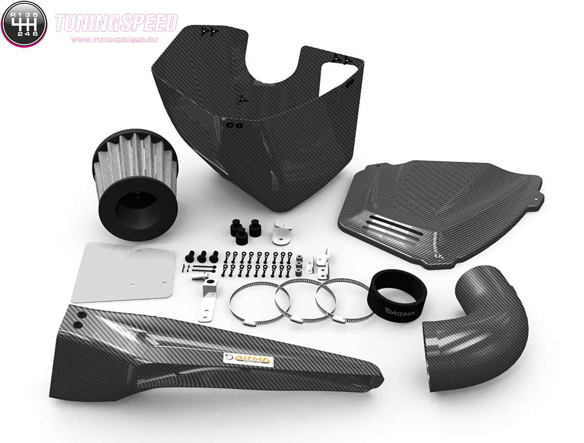 The ARMASPEED Carbon Fiber Intake System features a unique design with a vacuumed carbon fiber airbox to isolate hot engine bay air, ensuring cooler air intake for better engine performance. It offers high Quality, efficiency, and continuous Innovation. This system not only enhances performance but also adds to the engine bay’s aesthetics with its carbon fiber Restyling.