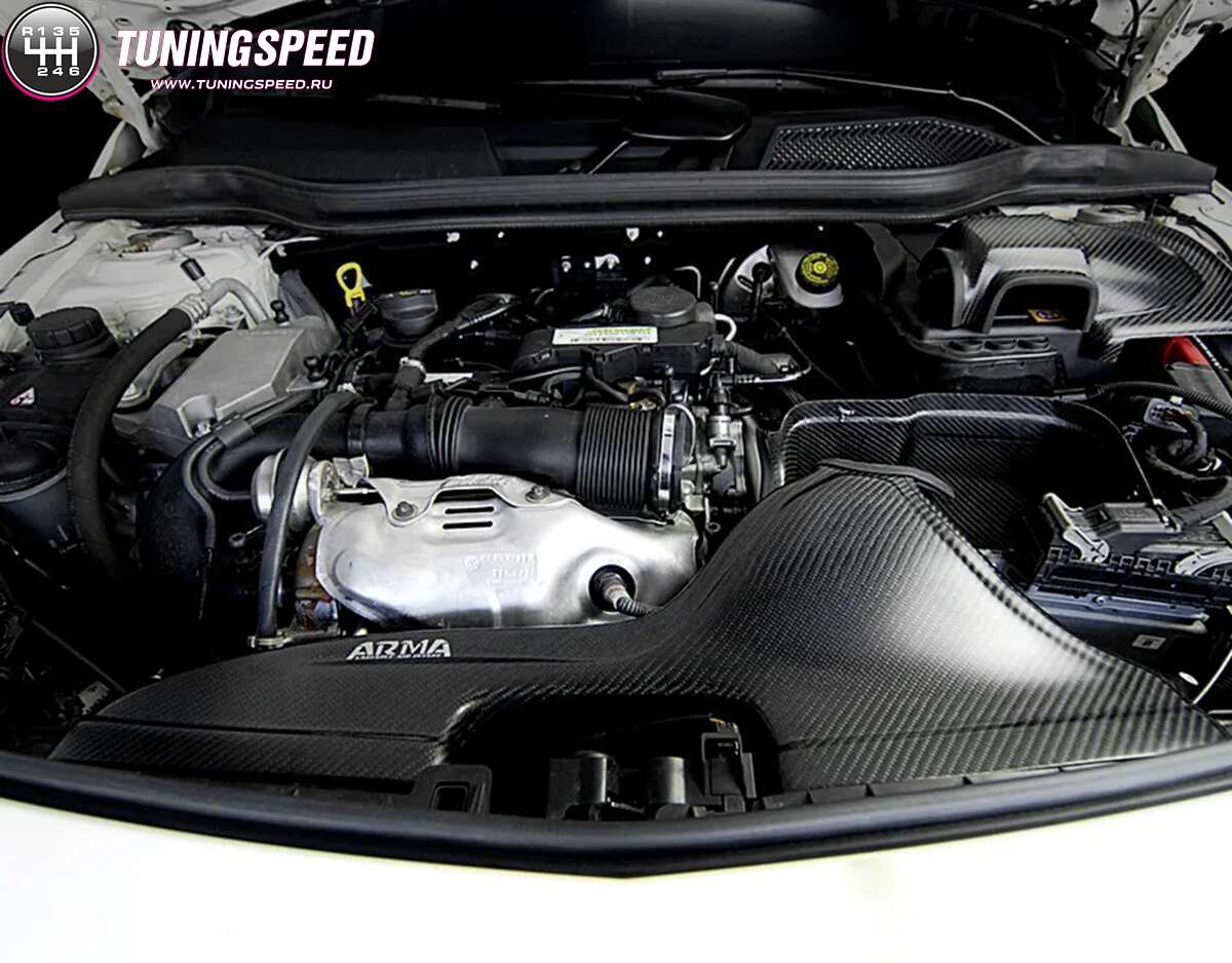 The ARMASPEED Carbon Fiber Intake System features a unique design with a vacuumed carbon fiber airbox to isolate hot engine bay air, ensuring cooler air intake for better engine performance. It offers high quality, efficiency, and continuous innovation. This system not only enhances performance but also adds to the engine bay’s aesthetics with its carbon fiber restyling.